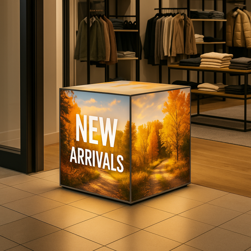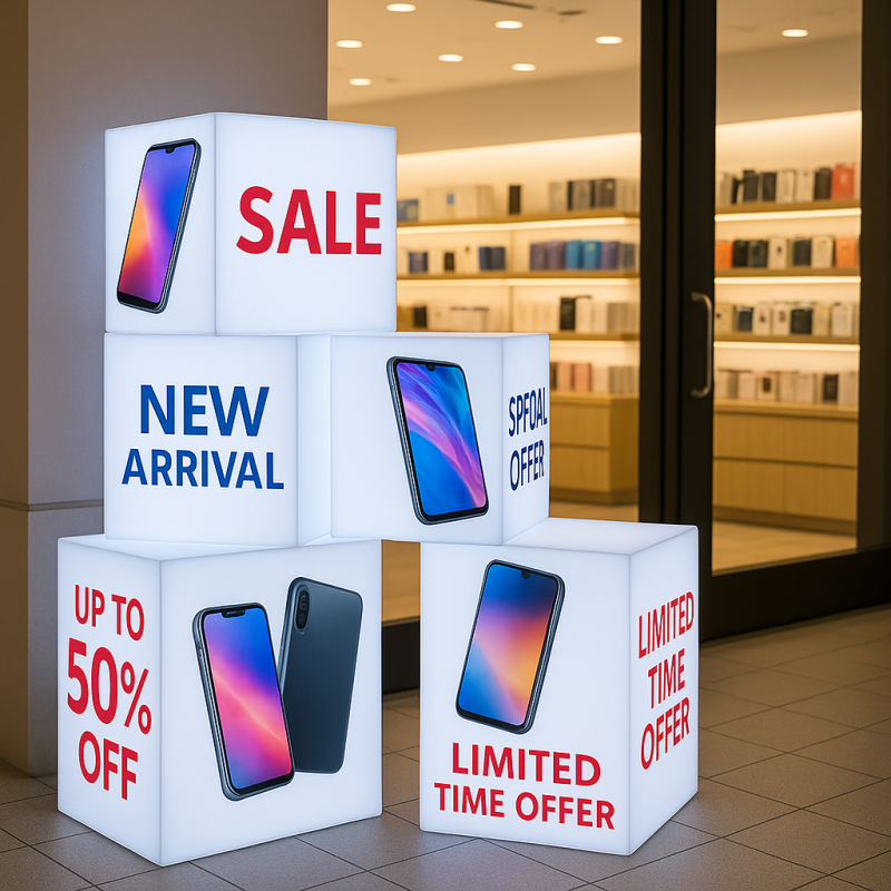 - Retail Stores and Windows: Highlight new arrivals or promotions with glowing cube displays that stop passersby.