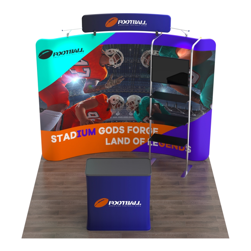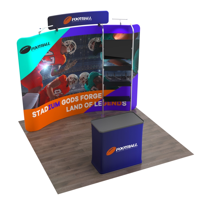 10ft curved tension fabric wall delivers a wraparound effect that pulls attendees into your display.