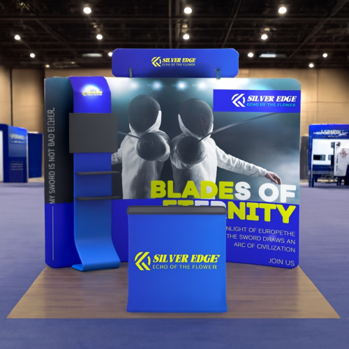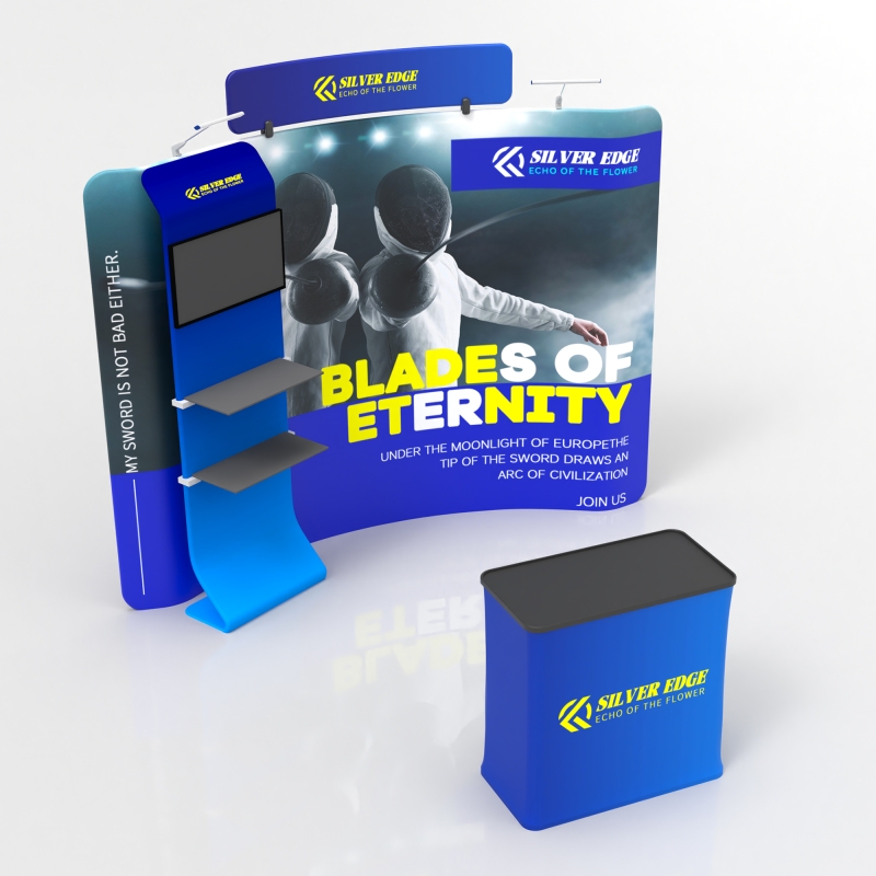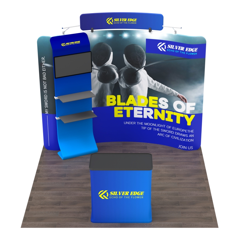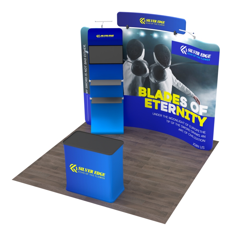 This booth offers a bold and sleek appearance, making a lasting impression at any event. The modern design, combined with eye-catching graphics, ensures your brand captures attention and stands out among the competition.