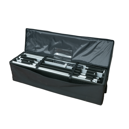A reinforced nylon carry bag protects all frame sections and accessories during travel. The sturdy zipper enclosure and ergonomic handles make it easy to move the booth system from one event to another—ideal for exhibitors who value convenience and mobility.
