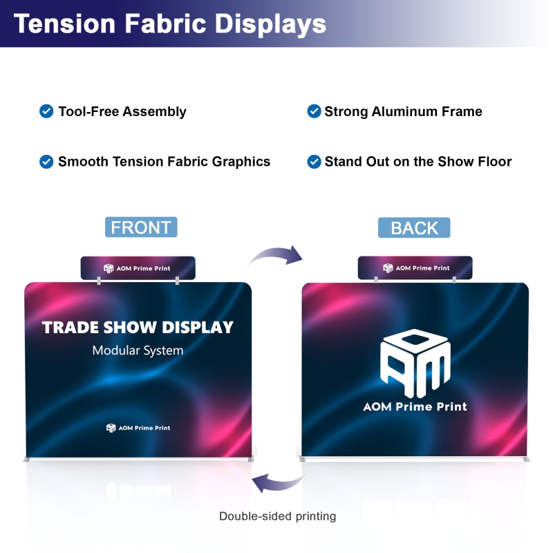 This booth features a durable tension fabric backdrop, offering a sleek and professional look for any event.