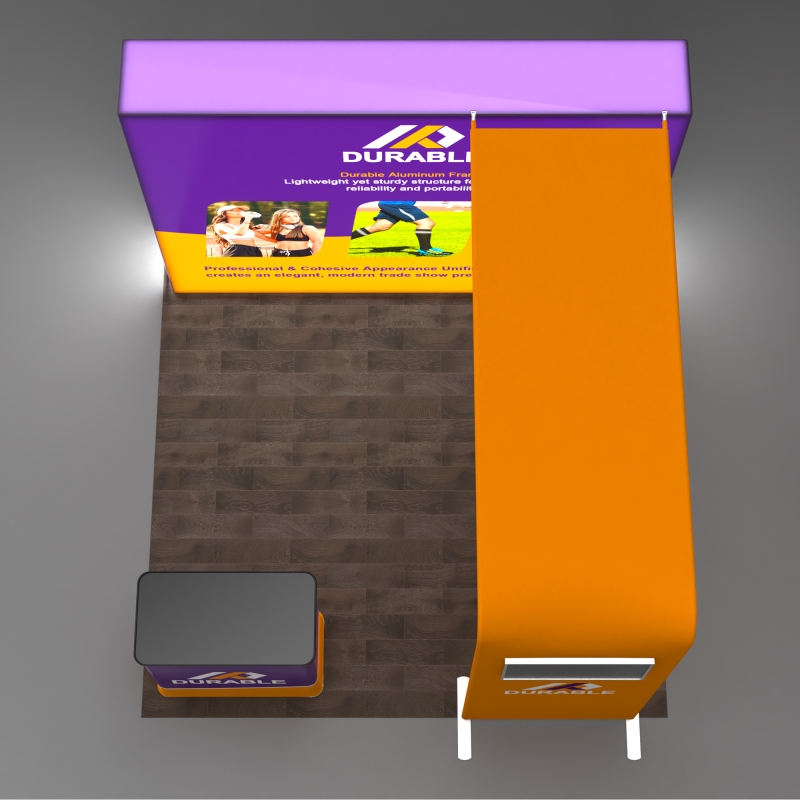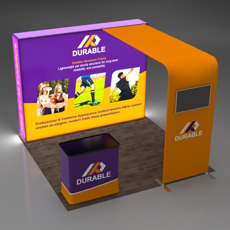 The integrated LED lightbox system delivers even, professional lighting that enhances depth, color, and visibility. Your booth graphics appear vivid and polished, helping your brand stand out in crowded exhibition spaces.