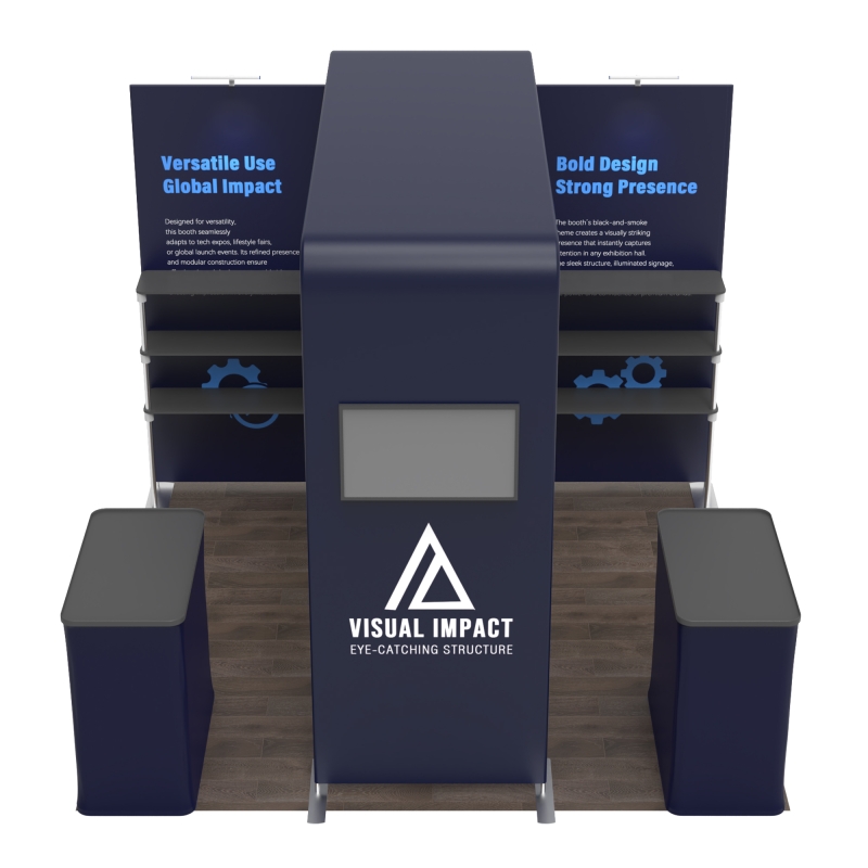 Ideal for trade shows, retail pop-ups, product launches, and customer engagement spaces. Whether your goal is to unify digital and physical branding or to create a polished and engaging visitor experience, this booth ensures your brand message is communicated with clarity and impact.