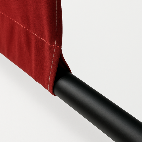 The banner graphic features sewn pocket sleeves on the top and bottom edges, allowing the fabric to slide smoothly over the crossbars. This design creates a tight, wrinkle-free fit and delivers a clean, professional look.