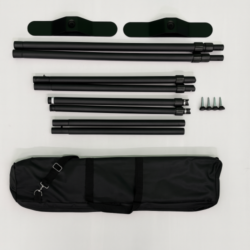 The full display kit includes all aluminum tubing, metal base plates, and assembly hardware neatly organized in a durable carrying bag. Lightweight and compact, it makes transport and storage effortless between events.
