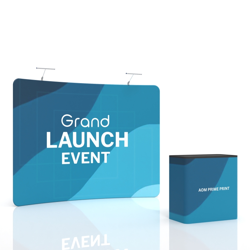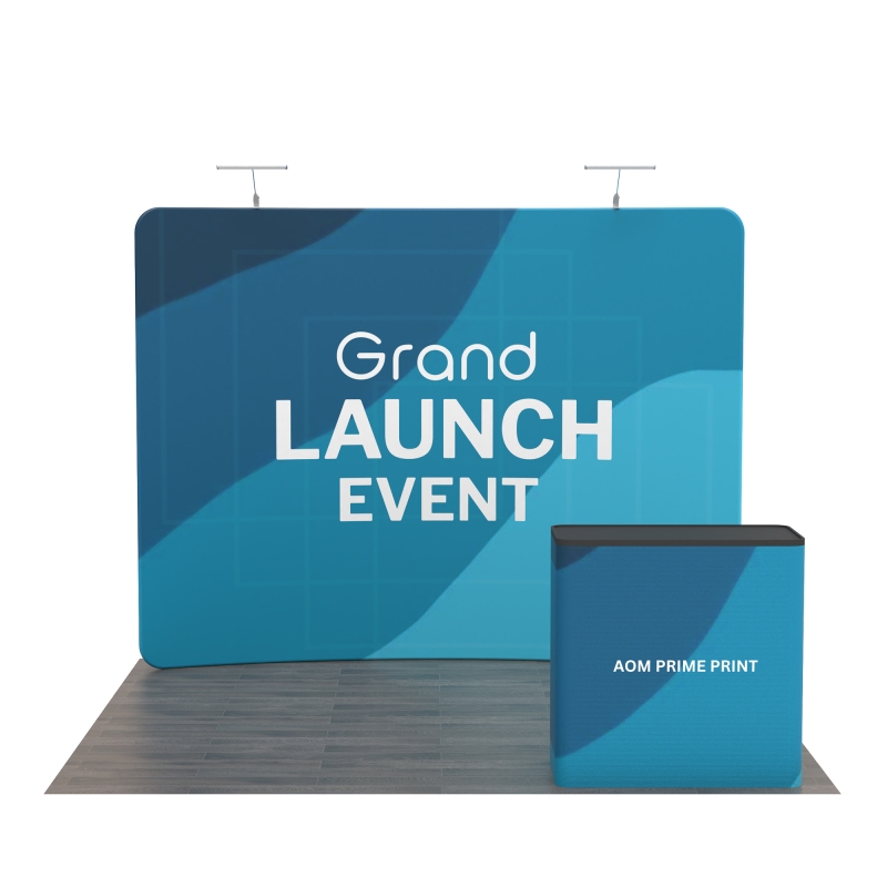 This 10x10 Curved Trade Show Booth with Fabric Backwall and Podium creates a sleek and modern presentation space designed to capture attention. The curved fabric backdrop delivers a smooth, flowing appearance that enhances visibility from multiple angles, while ensuring high-quality, wrinkle-free graphics. Complementing the backdrop, the included podium provides a welcoming surface for engaging conversations and displaying promotional materials, keeping the booth both functional and professional.