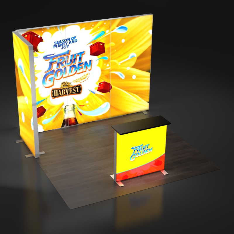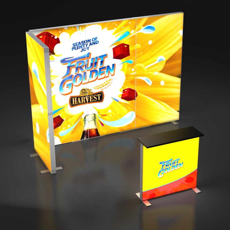 Ideal for exhibitors who need a portable yet high-impact booth solution, this modular system supports repeated use across different events. Each lightbox folds compactly for transport, and the SEG graphics can be refreshed at any time for new campaigns. Whether you're showcasing products, launching a brand message or creating an engaging customer space, this L-shape illuminated booth provides a clean, modern and professional presentation that helps you stand out at trade shows, exhibitions and promotional events.