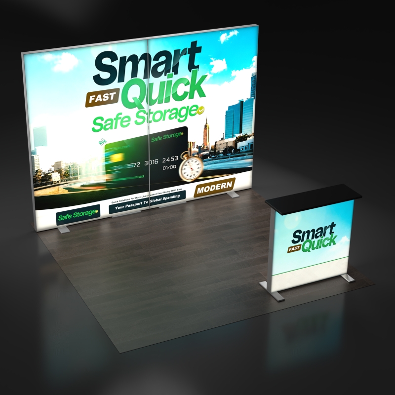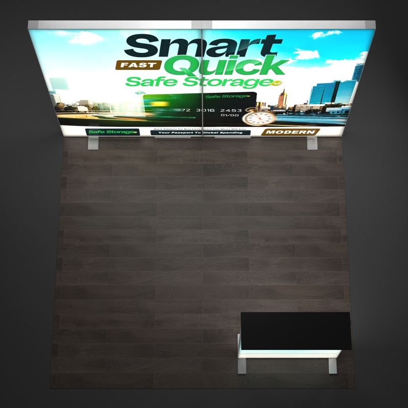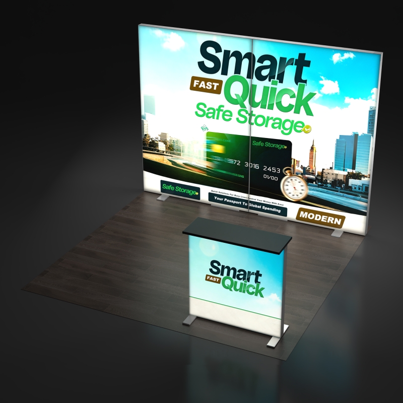 The included backlit podium extends your branding beyond the backdrop, providing a functional touchpoint for demos, literature display, or customer interaction while reinforcing your illuminated booth design.