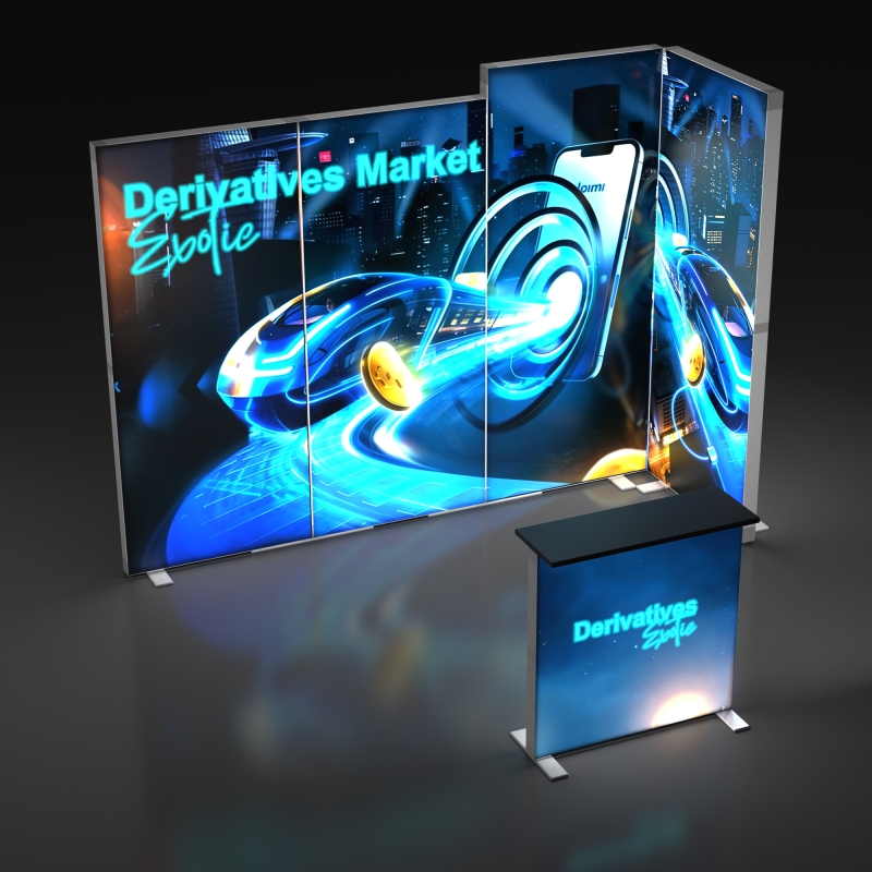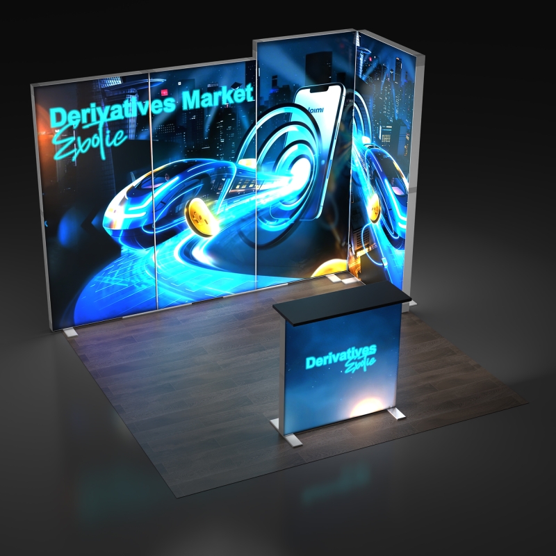 The included backlit podium extends your branding beyond the backdrop, providing a functional touchpoint for demos, literature display, or customer interaction while reinforcing your illuminated booth design.