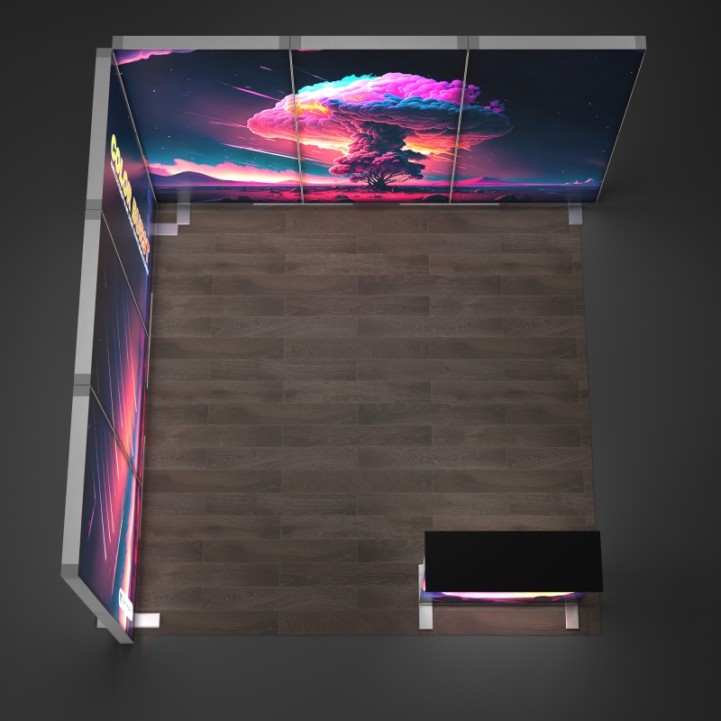 Modular SEG lightbox components can be arranged in multiple layouts, allowing you to reconfigure the booth for different events or venue sizes while maintaining a cohesive illuminated look.