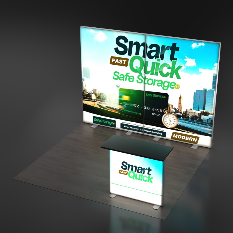Engineered for exhibitors who want a portable yet premium display, this booth features magnetic connections and tool-free folding frames that allow one person to assemble the entire structure quickly. Each component can be used individually for smaller events or combined for a full 10x10 layout, making the system reusable across multiple shows. Lightweight, travel-friendly and easy to refresh with new SEG graphics, this wide-panel lightbox booth offers a professional illuminated presence that helps your brand stand out in any trade show environment.