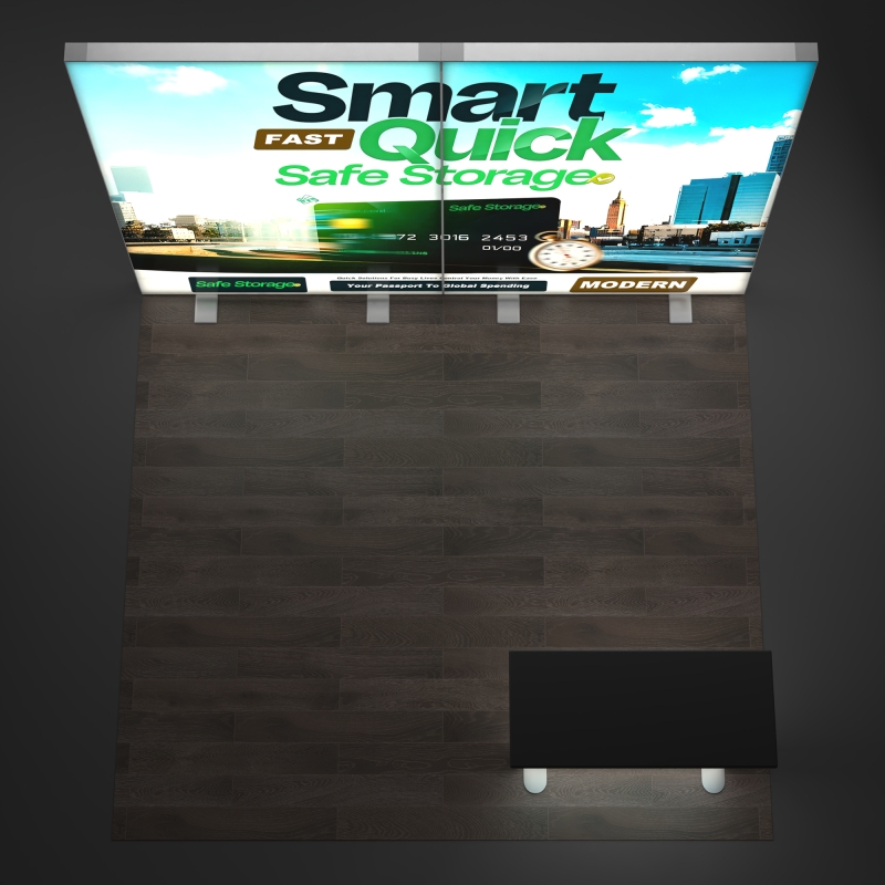 The included backlit podium extends your branding beyond the backdrop, providing a functional touchpoint for demos, literature display, or customer interaction while reinforcing your illuminated booth design.