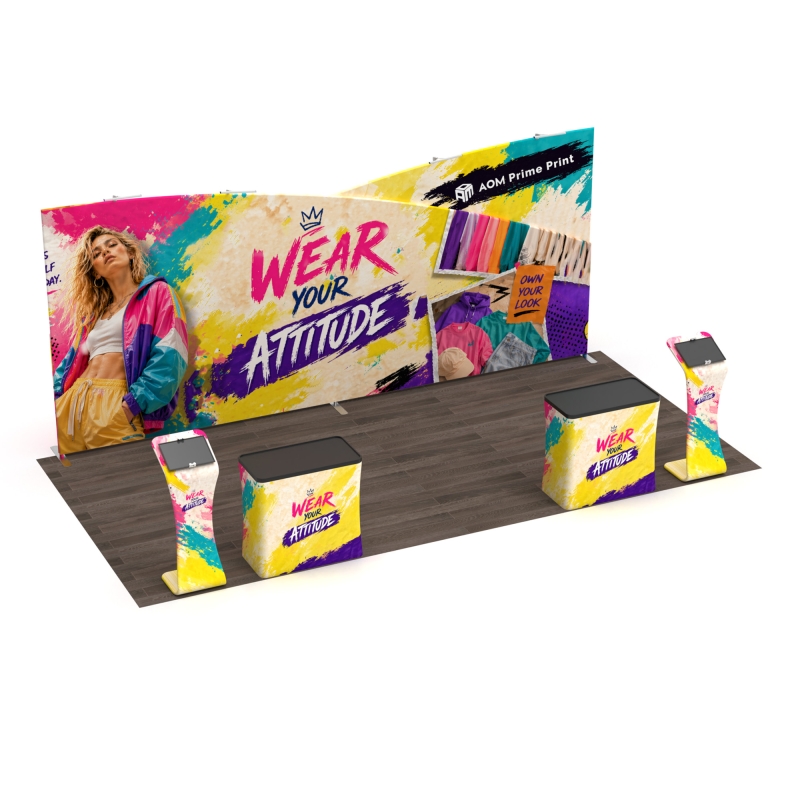 The extended 20ft backdrop layout provides a continuous large-format graphic surface for impactful visual communication.