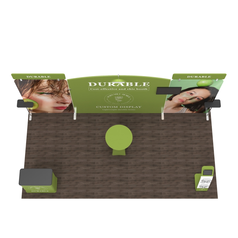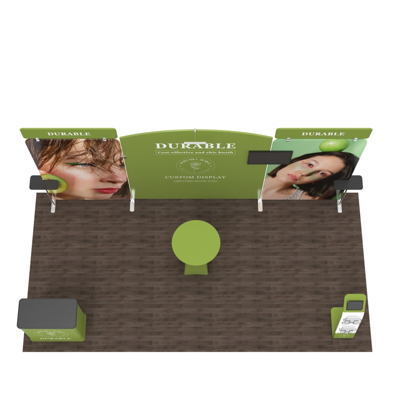 The unique curved top center backwall enhances visibility and adds depth to your trade show presentation for a professional, eye-catching look.