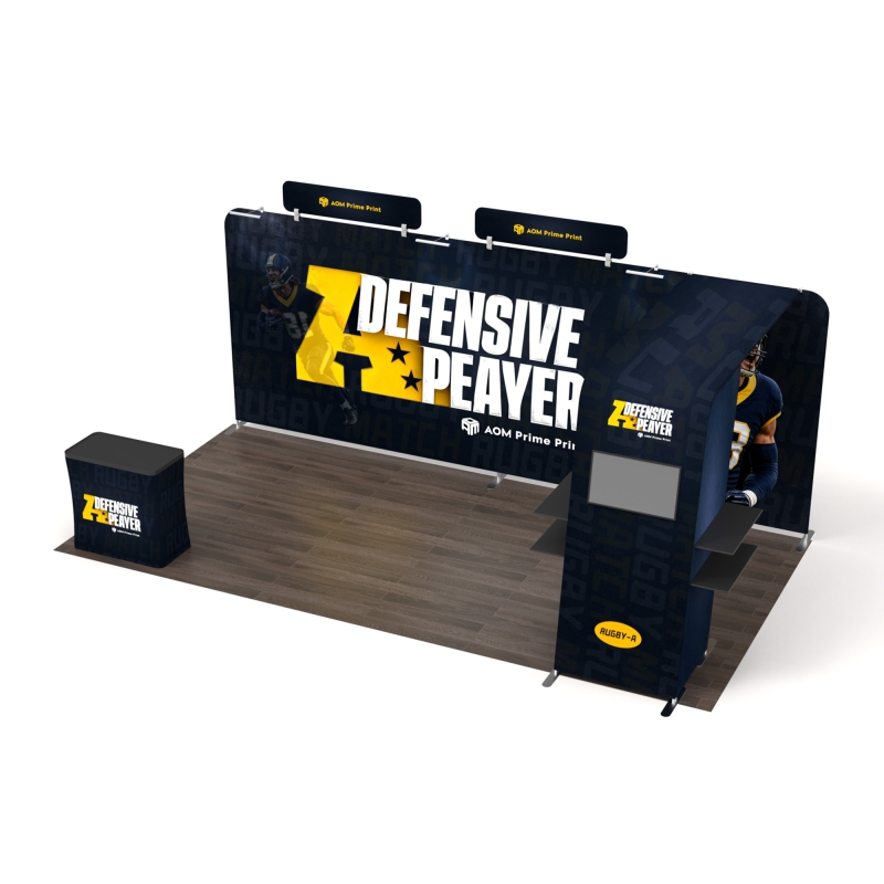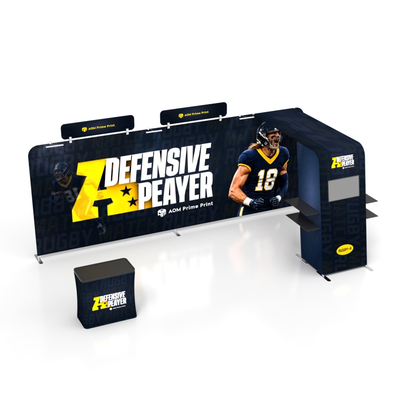 The rounded corners provide a smooth, polished look and ensure the graphics won't scratch or get damaged. This design enhances durability while giving the booth a modern, professional finish.