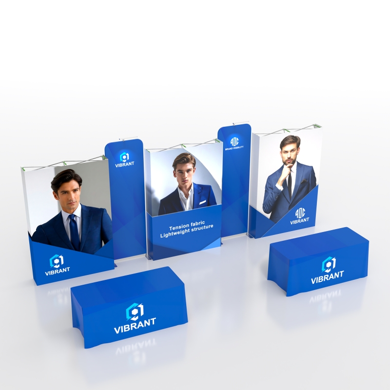 Includes two full-print 6ft table throws for a cohesive and branded display area. Provides functional workspace while reinforcing your professional image.