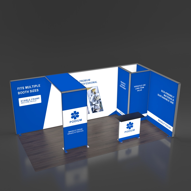 Engineered for practical dominance, this booth combines stunning visual impact with user-friendly functionality. Its high-grade aluminum modular frame ensures quick assembly and easy portability, guaranteeing a streamlined setup at any marketing venue. Ideal for high-stakes trade shows, corporate events, and product launches, this system delivers the perfect balance of elevated aesthetics and time-saving efficiency. This is exhibition architecture designed not just to be seen, but to be remembered, empowering your brand to captivate visitors and leave a lasting impression.