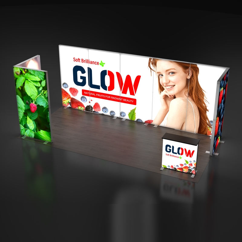 The extended 20ft layout accommodates multiple interaction points, ideal for demos, consultations, and managing higher visitor volume at trade shows.