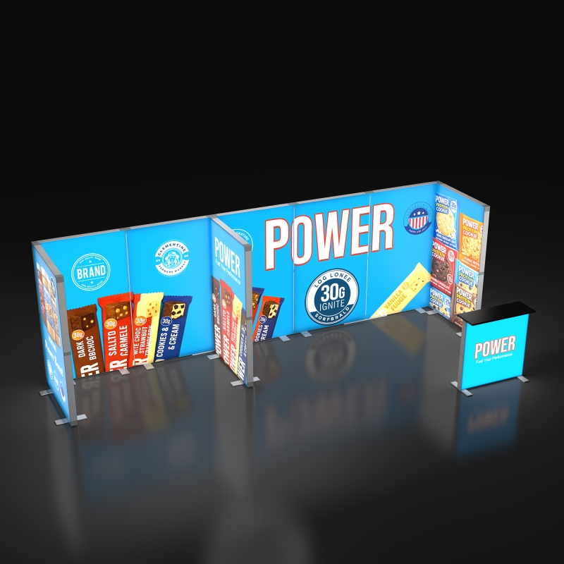 The extended 20ft layout accommodates multiple interaction points, ideal for demos, consultations, and managing higher visitor volume at trade shows.