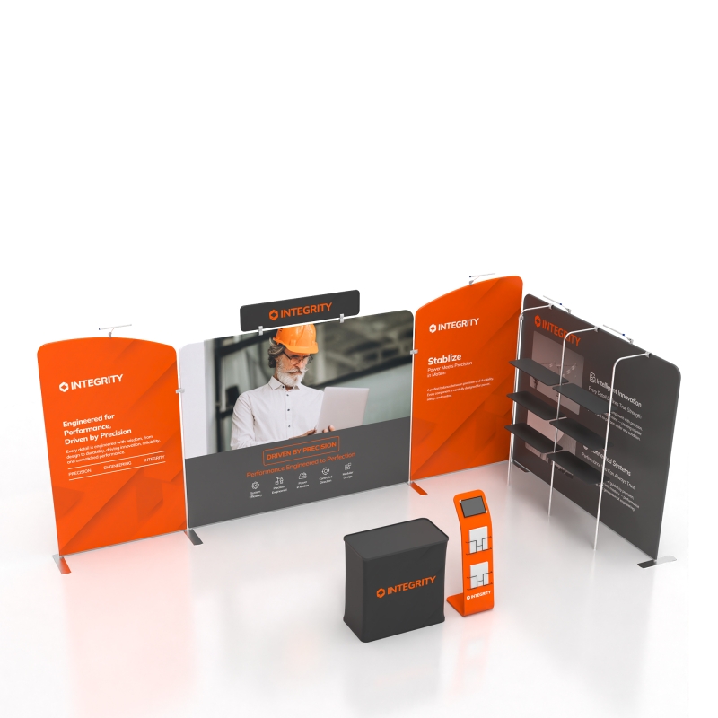 Tailor the entire display to match your brand's colors, logos, and messaging. Our high-quality fabric printing ensures vibrant colors and crisp graphics, making your booth stand out from the competition.