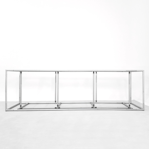 The frame in its collapsed form, showcasing a compact and portable design for easy storage and transport. Ideal for quick setup at events.