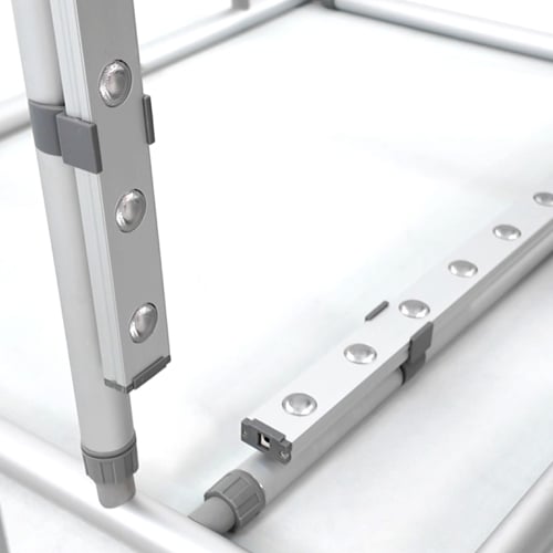 The lightweight aluminum snap-tube frame connects quickly with numbered push-button joints, making setup fast and intuitive. Strong yet portable, it provides solid support for your backlit lightbox display, no tools required.