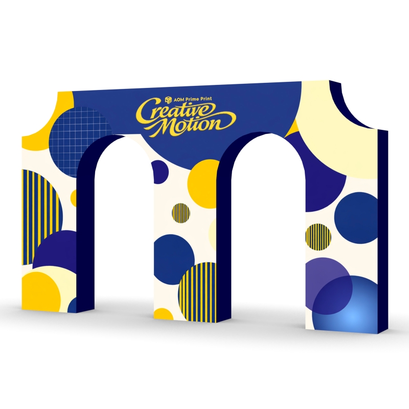 Built with a lightweight modular aluminum frame and stretch tension fabric graphics, this portable entrance arch display allows quick tool-free assembly and packs down efficiently for convenient transport between events. The durable structure and reusable fabric system make it a practical solution for repeated use across multiple occasions, helping create consistent entrance experiences for stage setups, retail activations, photo areas, ceremonies, and festival walk-through installations while saving setup time and storage space.