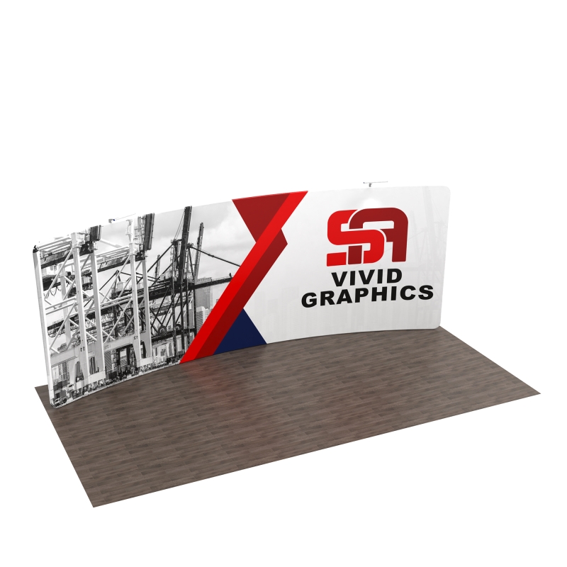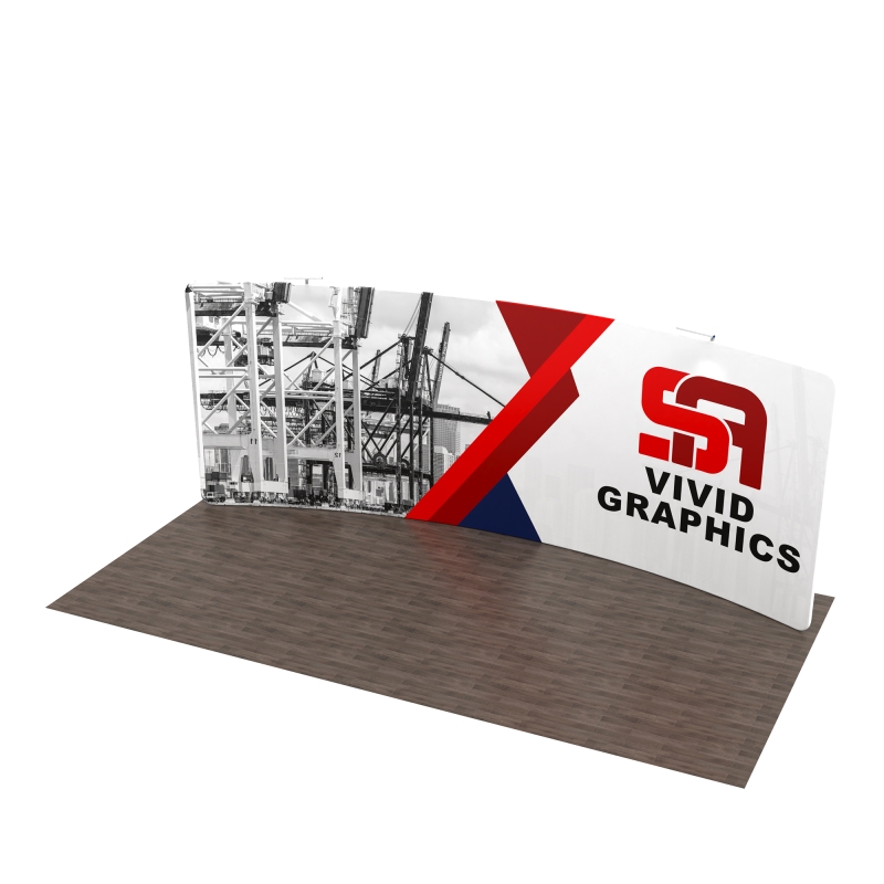 The 20ft Curved FlexZip Trade Show Display offers a sleek, rounded design that creates an elegant and dynamic backdrop for any event.