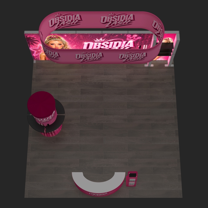 The balanced layout creates dedicated branding zones that support messaging visibility from multiple directions across the exhibition space.