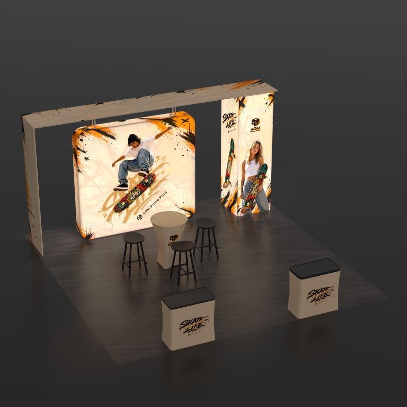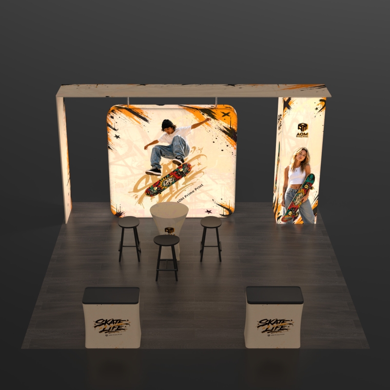 Snap-tube aluminum frames support efficient assembly and breakdown, making the booth easier to transport and reuse across multiple events.