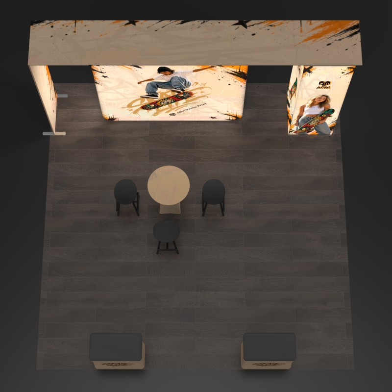 The 360° backlit lightbox creates a bright and continuous illuminated branding surface that improves graphic visibility and helps your booth stand out across the exhibition space.