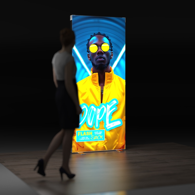 Edge-mounted LED strips deliver bright, even backlit illumination to your graphics, ensuring your brand stands out with vivid clarity at any event.