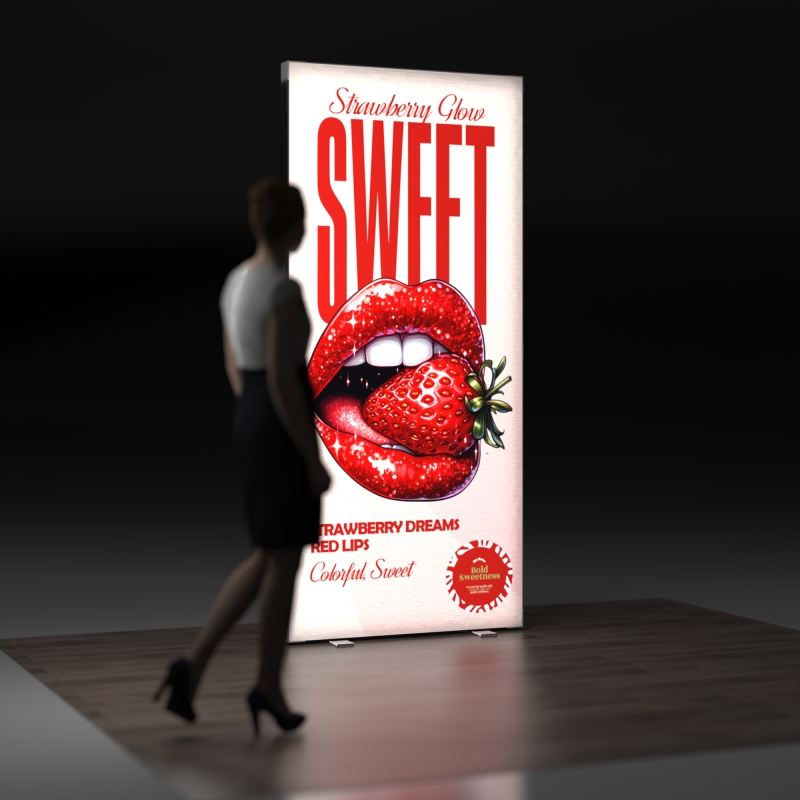 Edge-mounted LED strips deliver bright, even backlit illumination to your graphics, ensuring your brand stands out with vivid clarity at any event.