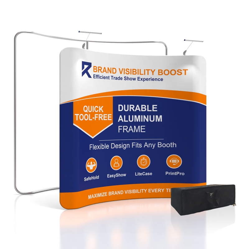 The 8ft Curved FlexZip Trade Show Display offers a sleek, rounded design that creates an elegant and dynamic backdrop for any event.