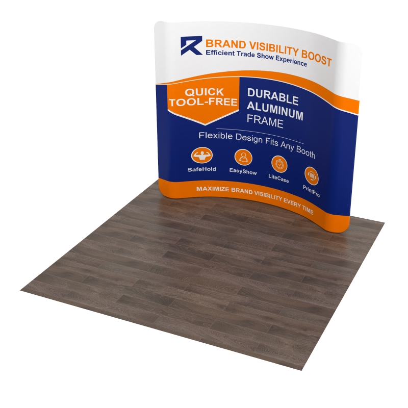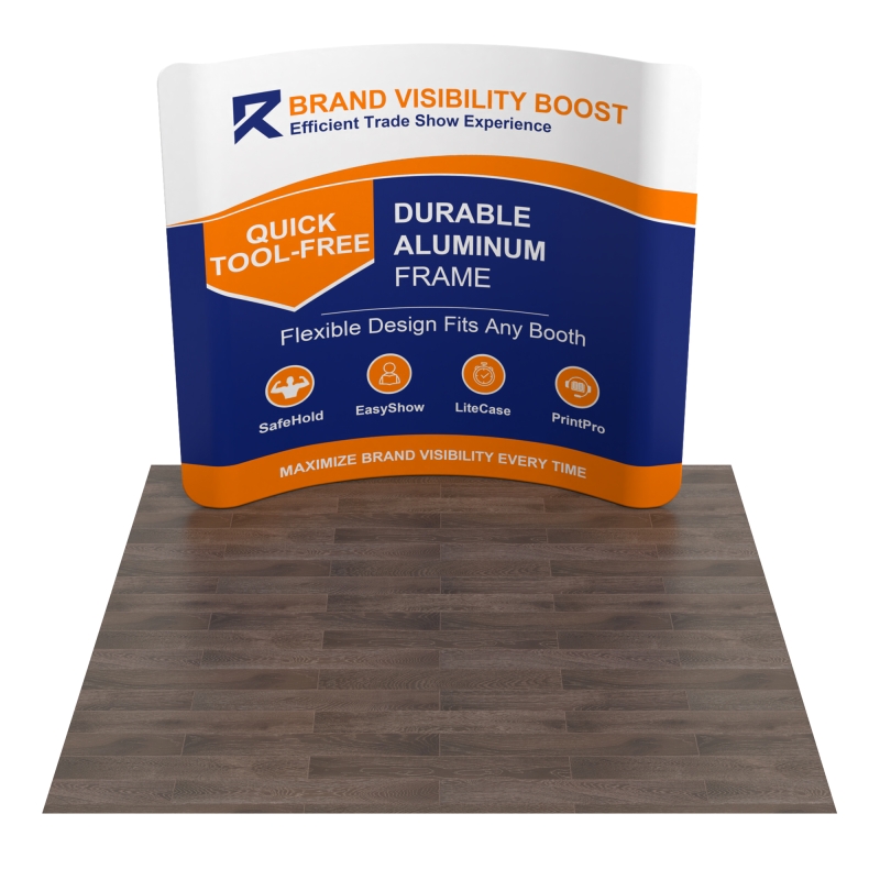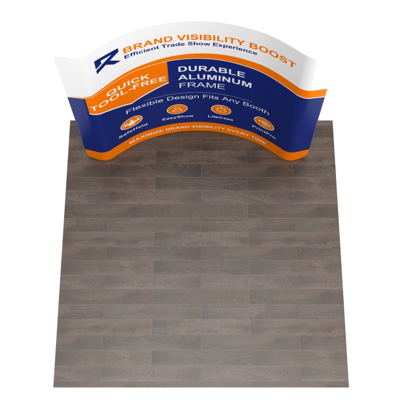 The 8ft Curved FlexZip Trade Show Display offers striking visibility with its sleek, curved design, allowing for a wide, panoramic view. Featuring a durable, collapsible aluminum frame with snap-together assembly, it ensures stability and portability. The wrinkle-free stretch fabric with high-resolution heat transfer printing delivers vibrant graphics.