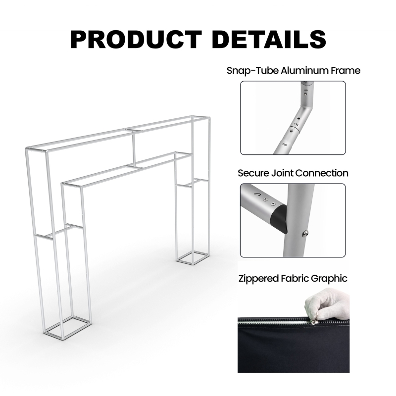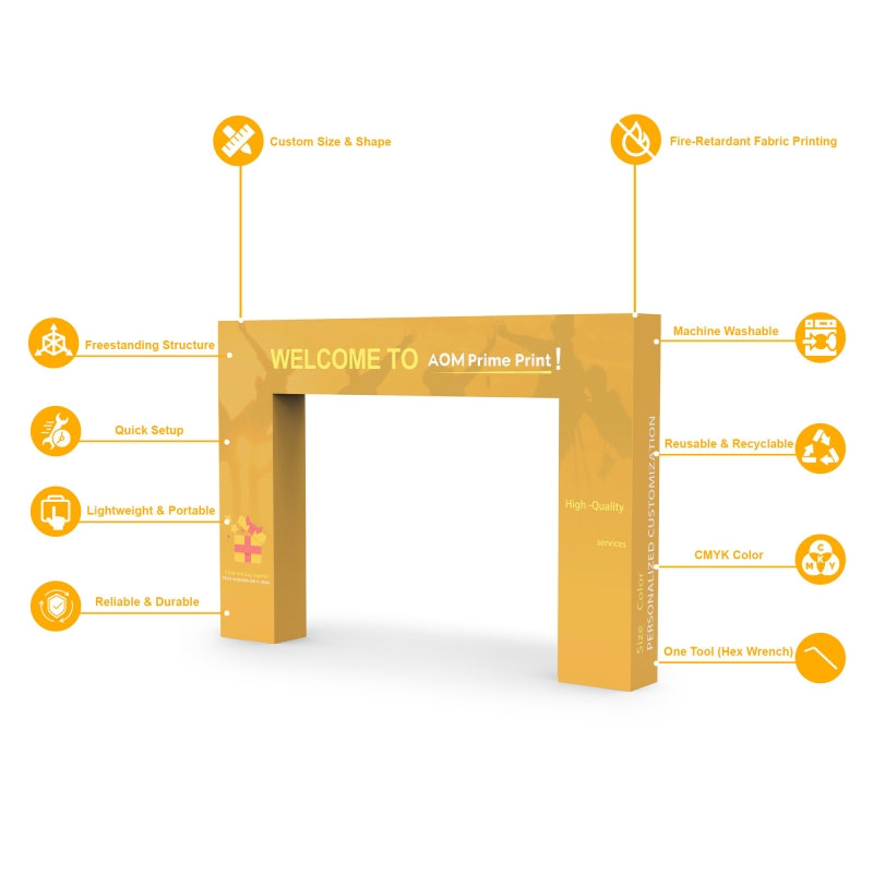 Built with a sturdy aluminum snap-tube frame and premium tension fabric graphics, this arch is reliable, portable, and quick to assemble without tools. The fire-retardant CMYK fabric is wrinkle-free, machine washable, reusable, and recyclable, ensuring vivid double-sided prints that look polished at every event. Ideal for sponsor signage, product showcases, or immersive activations, the rectangular archway provides a versatile solution that stands out in both corporate and promotional settings.