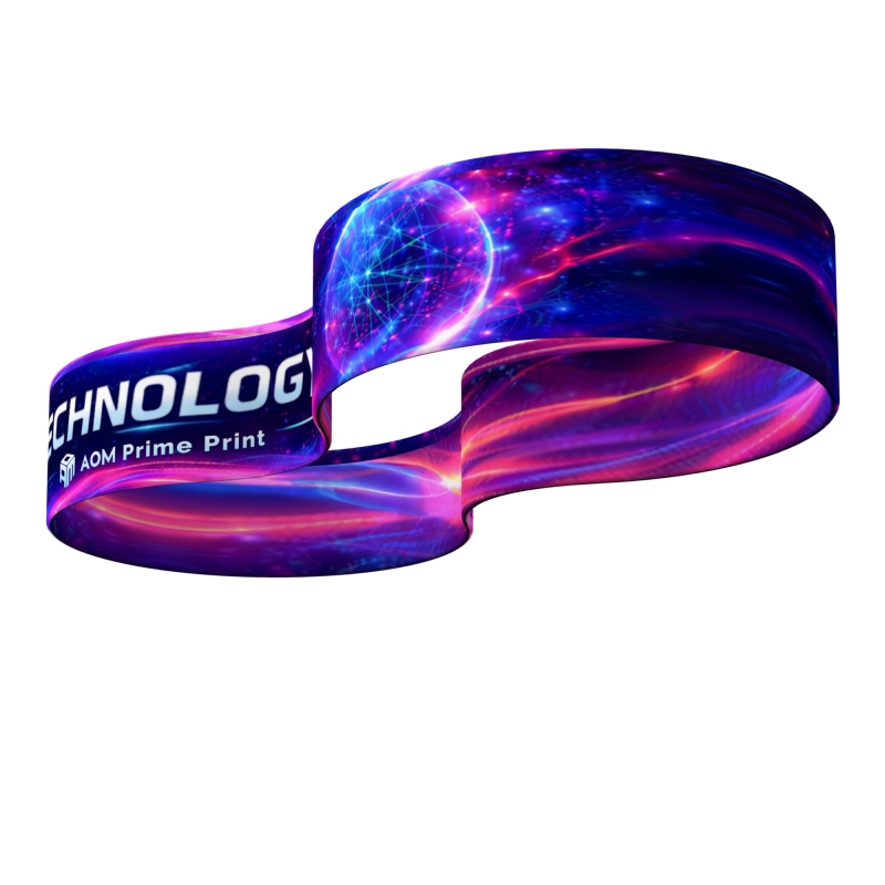 The continuous wavy ring shape allows graphics to remain visible from all directions, helping your branding stand out clearly across busy trade show environments.