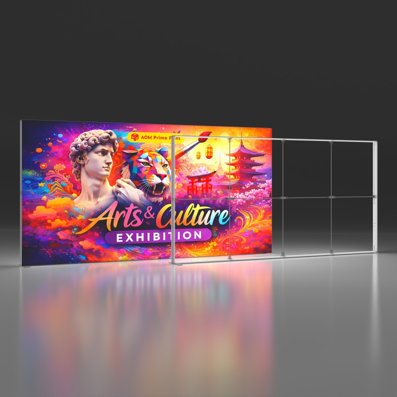 The 13x6.6ft PVC SEG backlit LED fabric lightbox display is designed for brands that want a wide, illuminated presentation without exceeding standard venue height limits. The extended horizontal format creates a strong visual foundation for trade show back walls, exhibitions, and event displays, offering generous space for brand storytelling, panoramic graphics, and clear messaging. Integrated LED backlighting delivers bright, even illumination across the entire surface, helping displays stand out on busy show floors.
