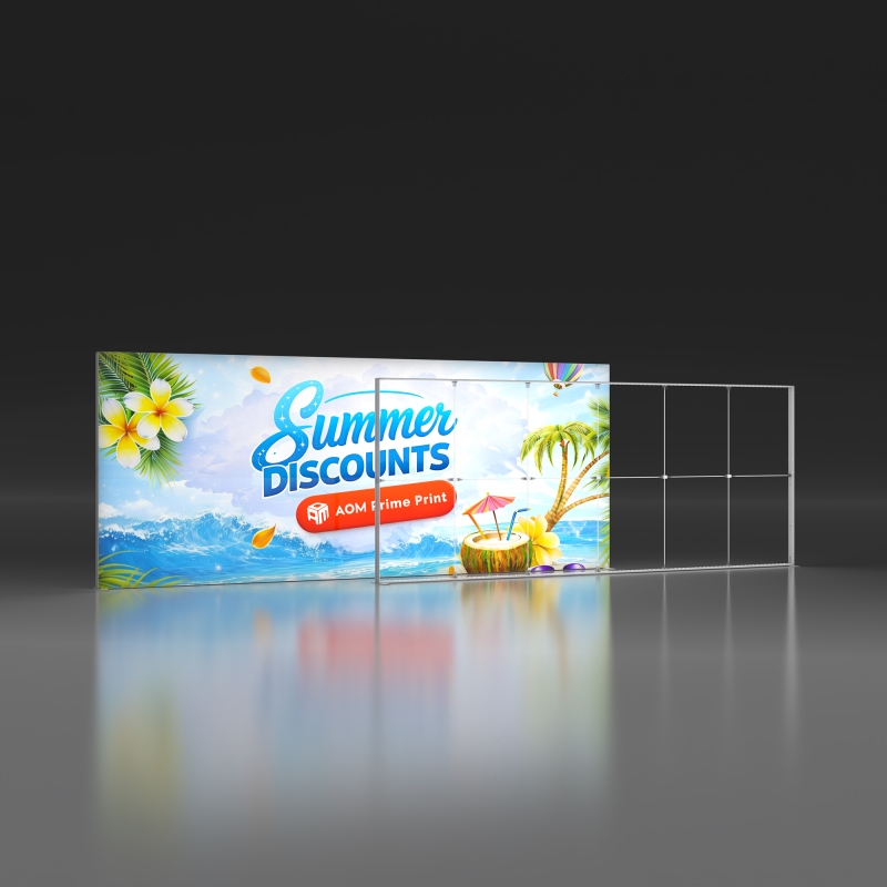 The freestanding structure allows for fast, tool-free setup by a single person, saving time on the show floor.